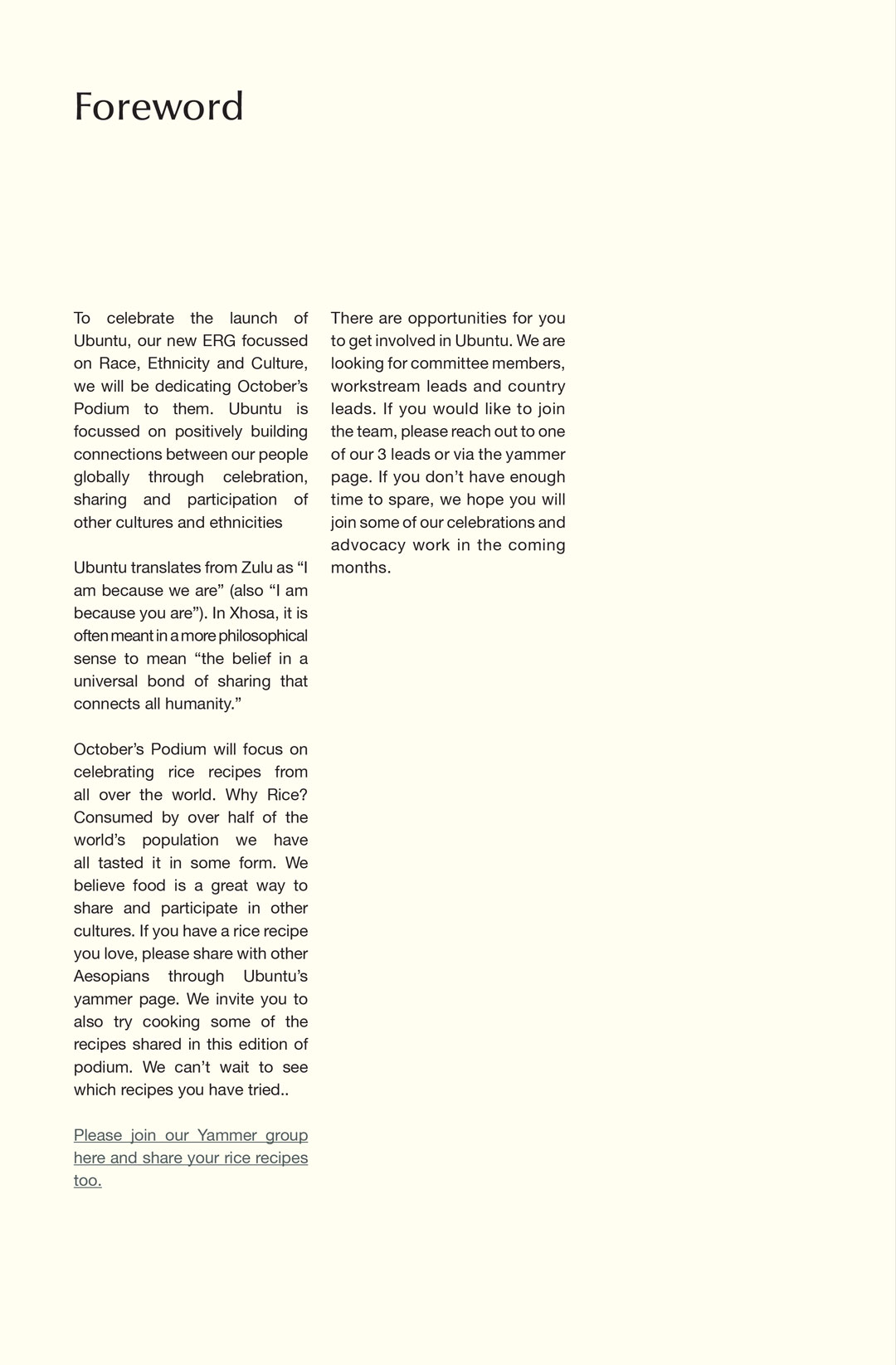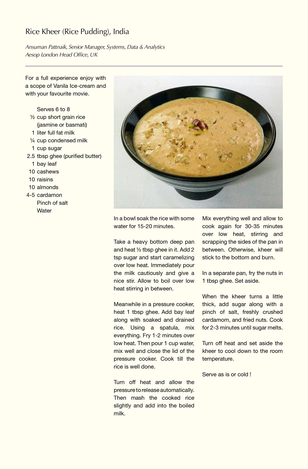 Art direction, image sourcing, and design for Aesop’s internally distributed digital magazine, ‘Podium.’ Structured as a 45-page cookbook, employee-submitted recipes are punctuated by images of rice across many different contexts and cultures.